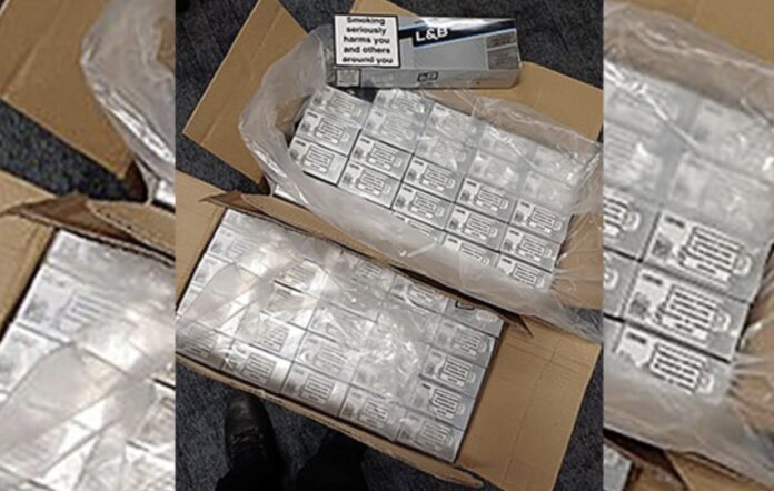 A short time later it was stopped in Daleside Road. When officers searched the vehicle they found a large quantity of suspected counterfeit cigarettes on the back seats.