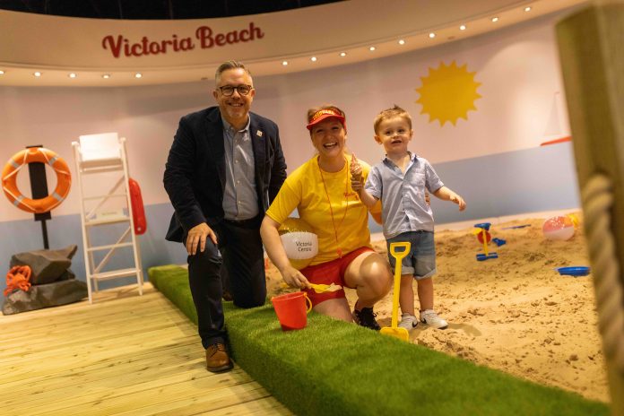 Ten-tonnes of sand have been shipped in to the centre’s upper mall to create the new free experience, which also features family-friendly games and pier-style retro arcade machines, including PacMan and Space Invaders.