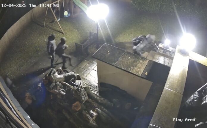CCTV footage shows the gang approaching the property armed with the pickaxe and sledgehammer. Police have also traced a grey hatchback using false plates, seen on the A610 between 7.21pm and 7.49pm on the same evening. It’s believed the vehicle travelled into the West Midlands.