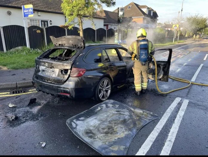Nottinghamshire Fire and Rescue Service Fire Control took three 999 calls to a report of a vehicle fire on Derby Road Bramcote at 06:31, in less than one minute mobilised a crew from Stapleford to deal with the incident.