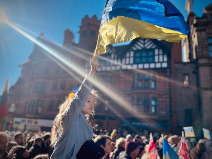 A rally was held in Old Market Square in Nottingham today as a protest against Russia’s aggression in Ukraine, and in support of the people of Ukraine.