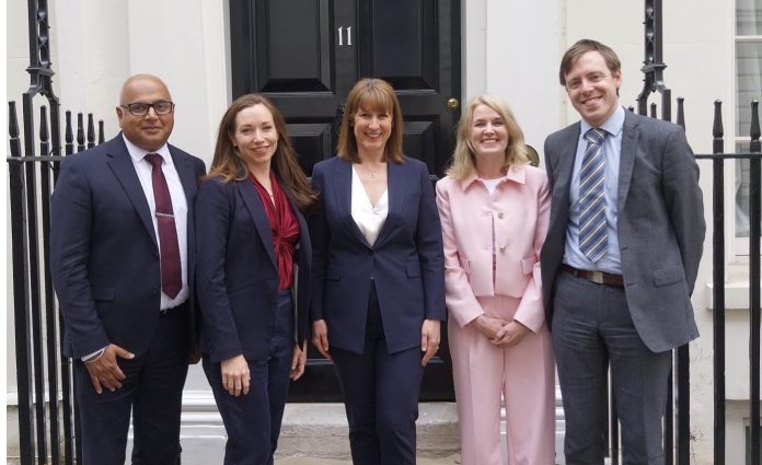 Chancellor of the Exchequer, Rachel Reeves (centre) with East Midlands MPs (left to right) Baggy Shankar, Catherine Atkinson, Jo White and James Naish