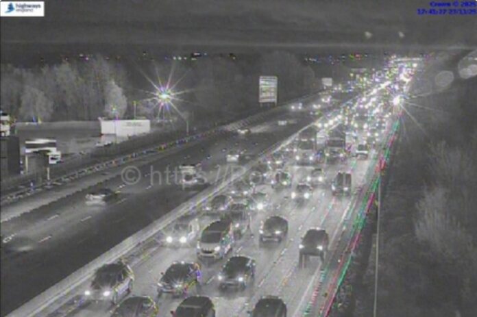 ‘Lanes closed on the M1 northbound between J25 and J26 Nottingham due to a collison involving at least four vehicles.