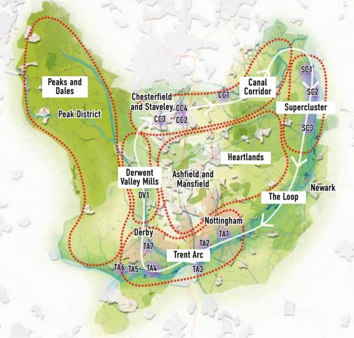 That series of aims includes development in and around Derbyshire and Nottinghamshire’s defunct power stations, existing business investment zones, its city centres, Chesterfield town centre, the Chesterfield to Staveley canal corridor, including Worksop and Retford, the East Midlands Freeport, Derwent Valley Mills, and the Peaks and Dales.
